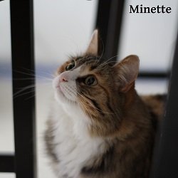 Minette, une très jolie petite tricolore qui adore prendre la pose pour ses adoptants.
